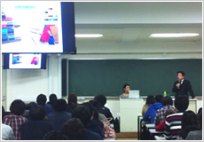 会社の理念やビジョンだけでなく、なぜ起業したのか、会社や社員に対する思いまで大学生に熱い思いをプレゼンテーションしていただきました。学生の積極的な質問が飛び交う、参加型の授業となるよう事前アドバイスを行いました。